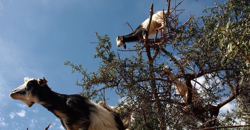 You might wonder how goats manage to reach the fruit, especially since the Argan tree must grow to about three meters tall before it even begins to leaf. This seeming impossibility has a simple explanation: the tree thrives in arid regions where vegetation is scarce. With little else to eat, our arboreal goats have become adept climbers, scaling the branches to feast on the leaves and fruit.