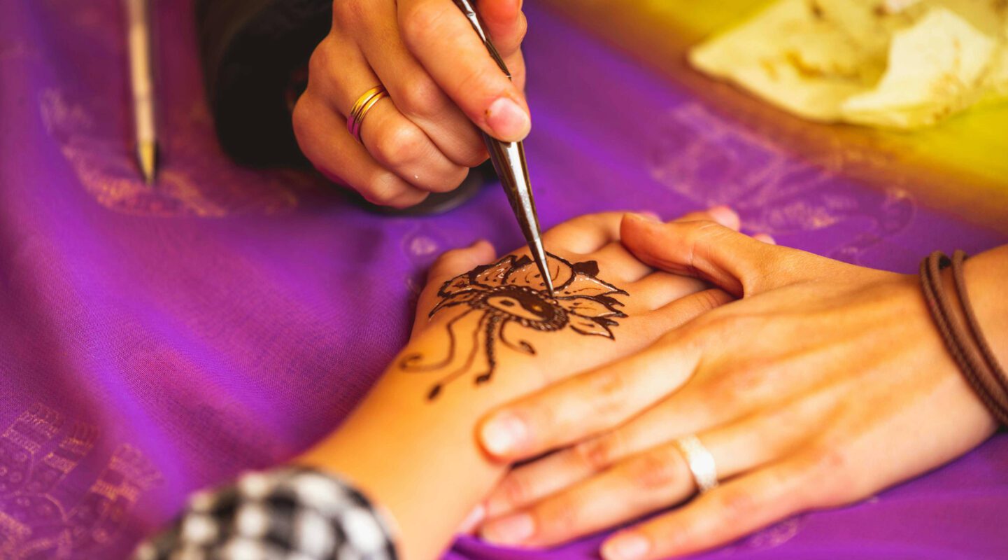 海娜师手中的锥形筒(类似注射器但无针头)仿佛魔法杖,棕绿色膏体流淌间,莲花在腕间绽放,费斯结在脚踝缠绕。整个创作过程通常只需10-25分钟,但请注意这些重要细节:
